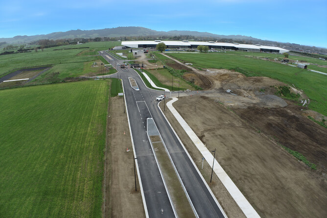 Our primary objectives include the construction of a new single-lane three-leg roundabout, realignment of approach roads, and the formation of approximately 500m of dual-lane heavy-duty access within a 29-metre wide corridor. The project also encompasses accommodation works to realign vehicle access for nearby landowners, temporary stormwater basin construction, earthworks, road pavement, roundabout construction, stormwater drainage, wastewater and water supply infrastructure, concrete works, utility services, street lighting, and traffic signs and markings.