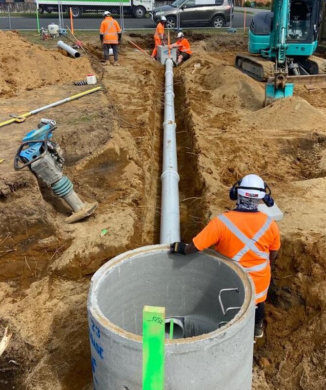 The project encompassed earthworks to complete the entrance and driveway, along with significant drainage works for the water main installation and connecting the sanitary sewer to the Council main.