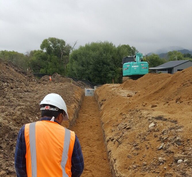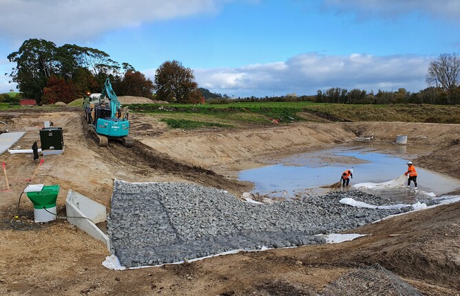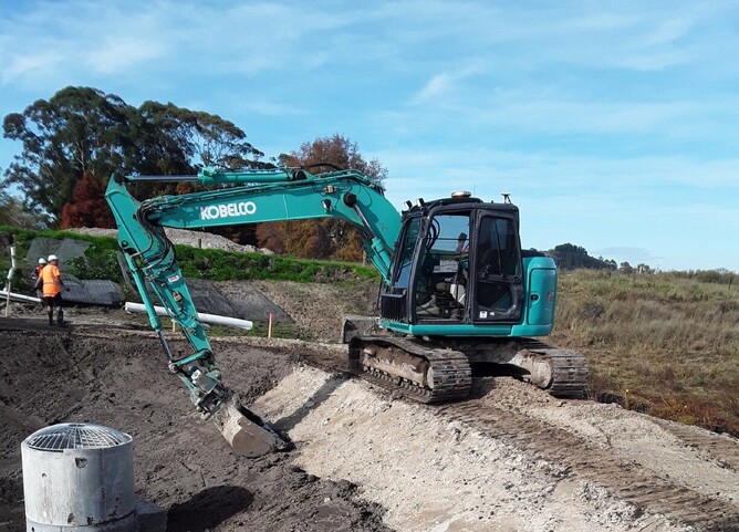 The scope of works comprised of extensive earthworks and installation of three-waters infrastructure such as 650m of stormwater pipework, water reticulation, and 202m of sewer pipework. The project also included roadmaking and the creation of a stormwater retention pond with reno rock mattresses.