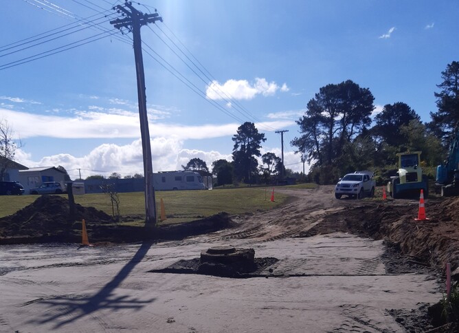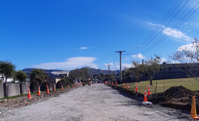 Involved seal extension and improvement including earthworks, drainage improvements, pavement construction, first coat sealing, and pavement marking.