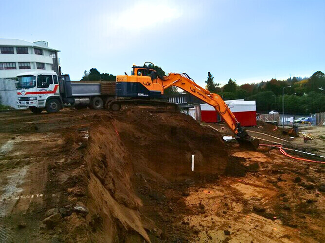 Involved siteworks for a brand new 5-storey, 6,000m2 law building at the University of Waikato Hamilton campus, including 13,000m3 of cut to fill, and 10,000m3 of cut to waste. Works also included 3-waters infrastructure, concrete works & kerbing, landscaping, carpark & surfacing.