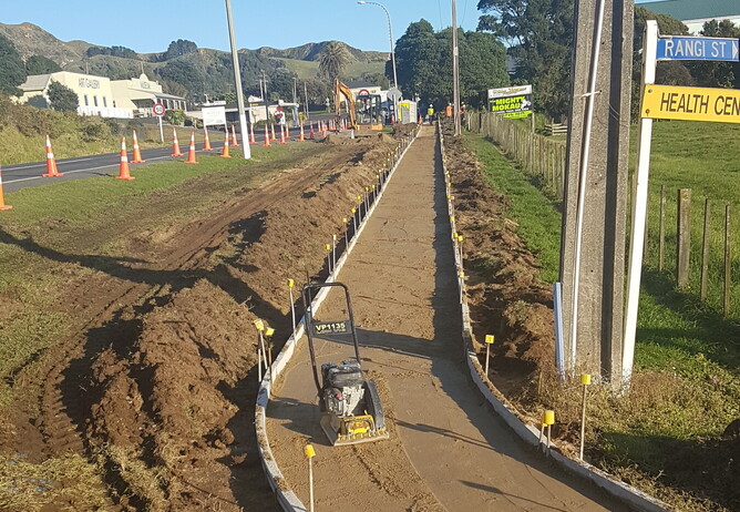 Construction of 2km of footpath replacements and associated works throughout the Waitomo District.