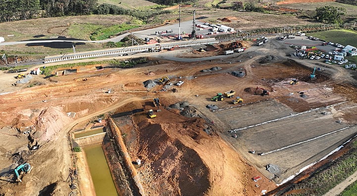 Shaping terrain through bulk earthworks, building a functional wetland for stormwater management, and constructing a mechanically stabilised earth wall to support rail infrastructure.